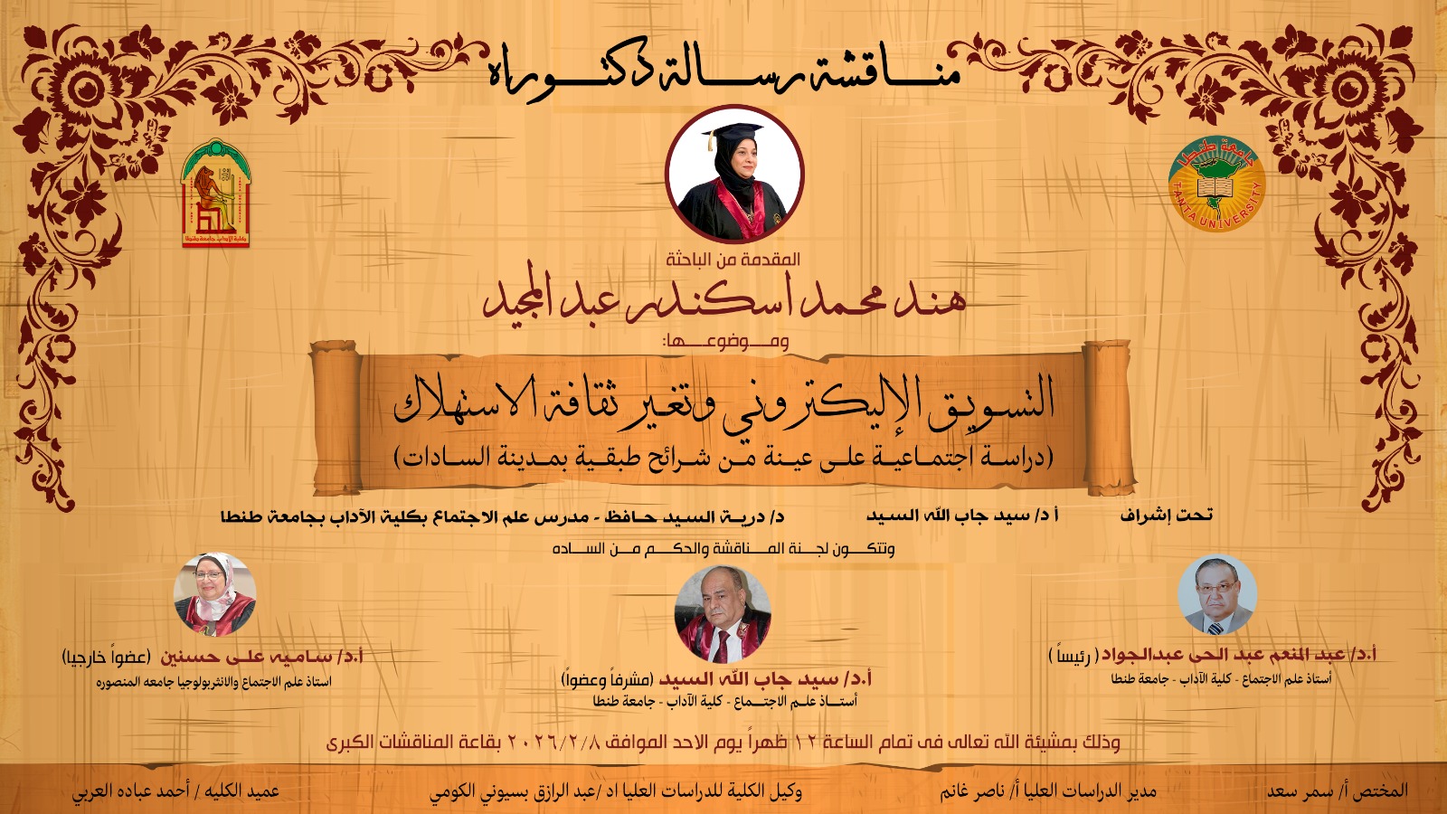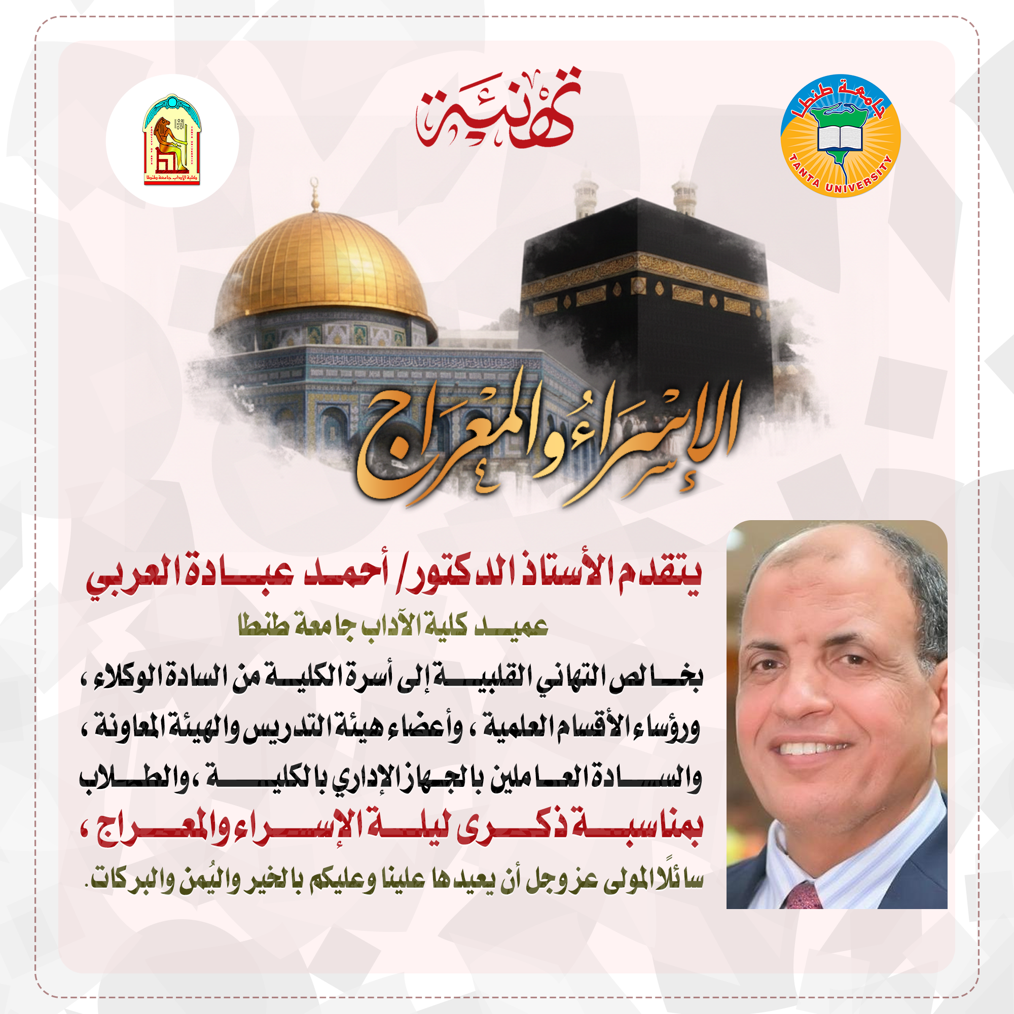 أبنائي وبناتي طلاب كلية الآداب الجدد، مع إشراقة عام جامعي جديد يسعدني أن أرحب بكم في كليتكم، كلية الآداب بجامعة طنطا. وأسأل الله العلي العظيم أن تسعدوا بحياتكم الجامعية الجديدة من خلال المشاركة في الأنشطة التي تقدمها الجامعة عبر إدارة رعاية الطلاب بالكلية، سواء كانت رياضية، اجتماعية، ثقافية، أو فنية. فالشخصية الجامعية السوية يجب أن توازن بين العلم والتخصص وبين بناء الجسد والروح وتنمية المهارات والإبداع في شتى المجالات.