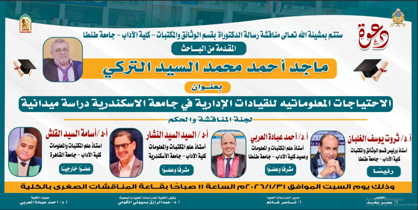 أبنائي وبناتي طلاب كلية الآداب الجدد، مع إشراقة عام جامعي جديد يسعدني أن أرحب بكم في كليتكم، كلية الآداب بجامعة طنطا. وأسأل الله العلي العظيم أن تسعدوا بحياتكم الجامعية الجديدة من خلال المشاركة في الأنشطة التي تقدمها الجامعة عبر إدارة رعاية الطلاب بالكلية، سواء كانت رياضية، اجتماعية، ثقافية، أو فنية. فالشخصية الجامعية السوية يجب أن توازن بين العلم والتخصص وبين بناء الجسد والروح وتنمية المهارات والإبداع في شتى المجالات.