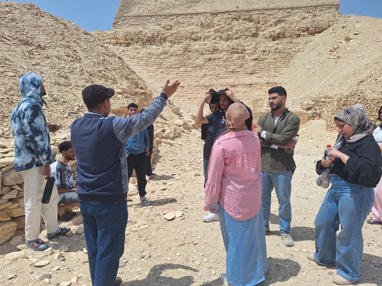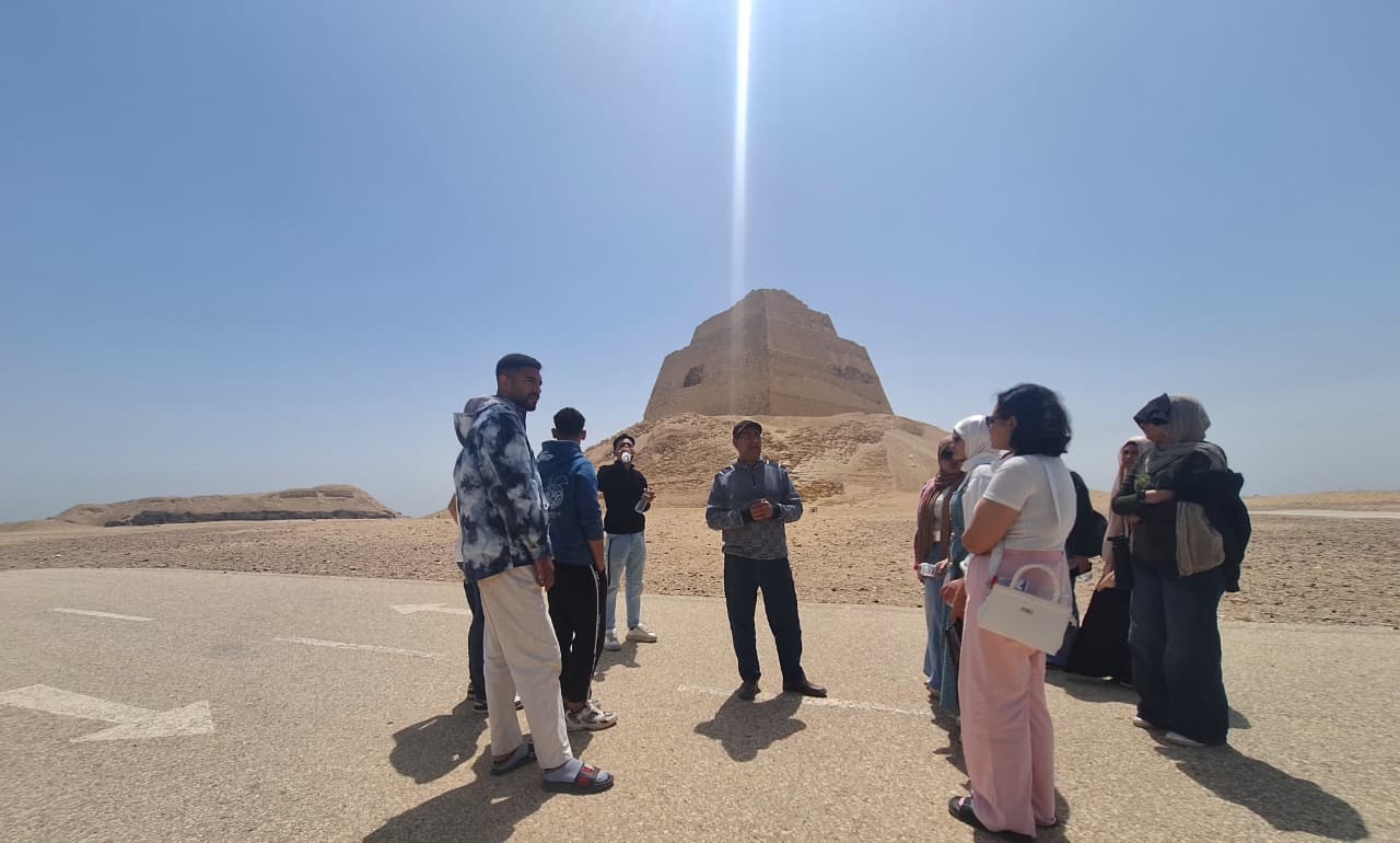 وتضمنت الزيارة شرحًا تفصيليًا لهرم ميدوم ومجموعته الجنائزية، والتي شملت معبد الوادي، والطريق الصاعد، والمعبد الجنائزي، بالإضافة إلى دراسة مصاطب الأفراد بالمنطقة من الجوانب المعمارية والفنية والدينية.